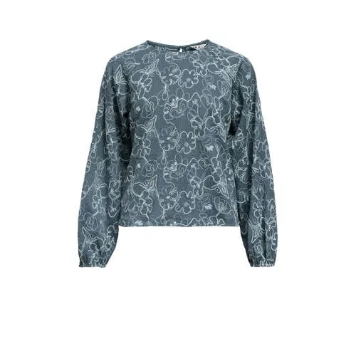 OBJECT gebloemde top grijsblauw gebreid Prijzen