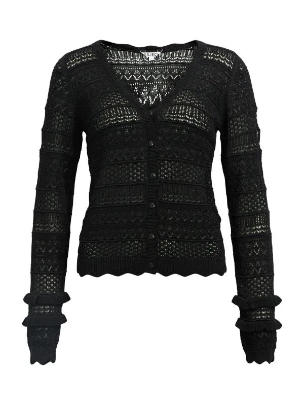 Design: Extra lange mouwen, Zoom/rand met boord, Diepe snit/decolleté, Geschulpte zoom; Type sluiting: Knoopsluiting; Materiaal: Gehaakt; Halstype: V-hals; Motief: Effen; Details: Mesh; Extra's: Fully fashioned, Voelt zacht aan; Pasvorm: Normale pasvorm; Armlengte: Lange mouw; Lengte: Normale lengte