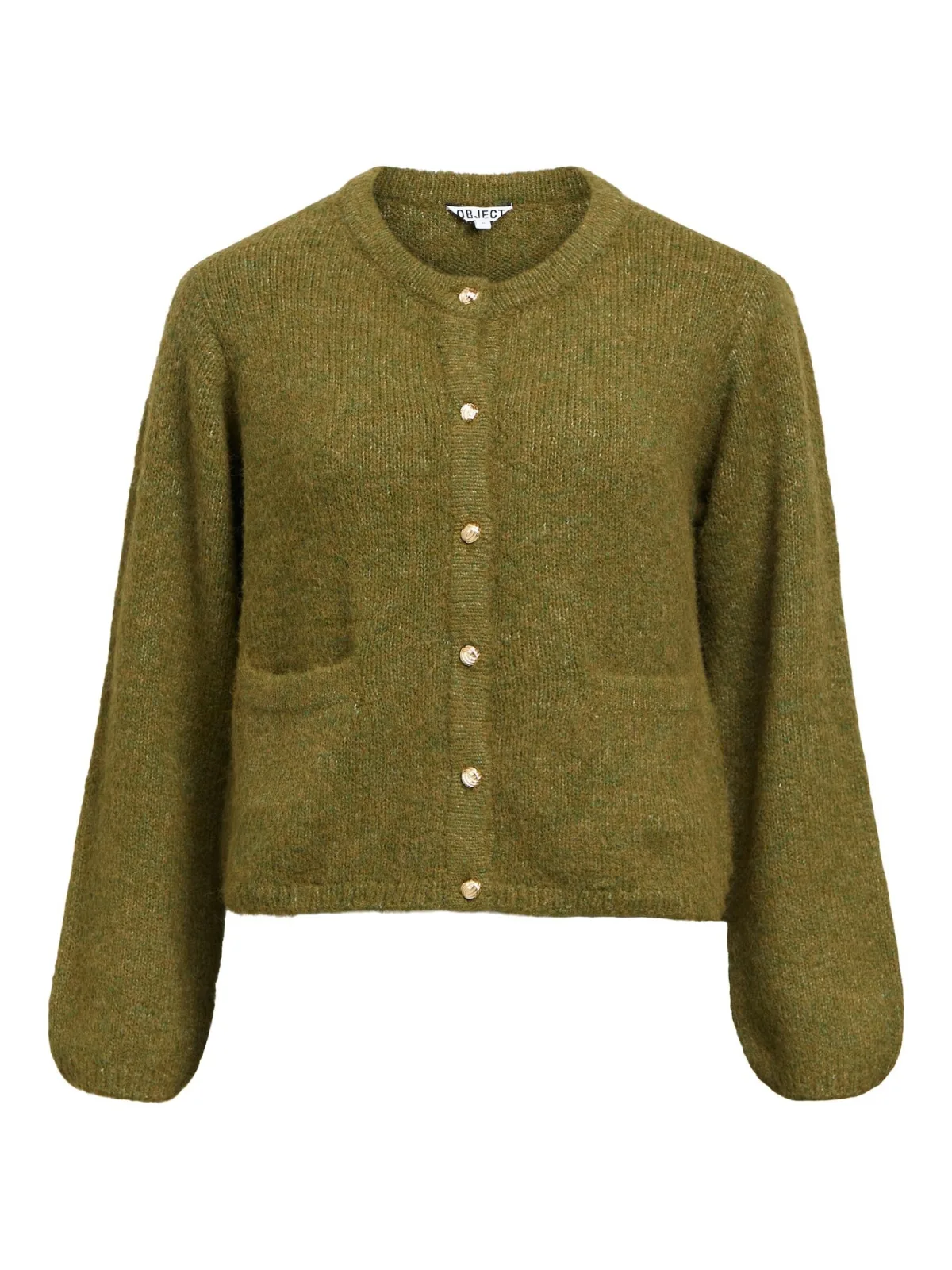 OBJECT Gebreid vest ‘OBJSAGGIA’ olijfgroen