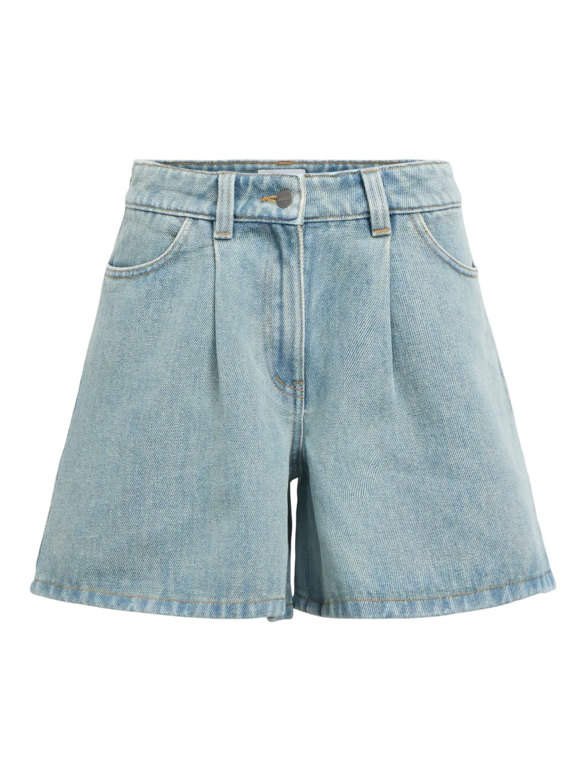 Design: Ritssluiting, Zakken aan de zijkant; Type sluiting: Knoopsluiting; Materiaal: Denim; Motief: Effen; Details: Plooien; Extra's: Contrasterende naden, Riemlussen; Wassing: Light washed; Lengte: Kort/mini; Pasvorm: Loosefit; Taillehoogte: High waist