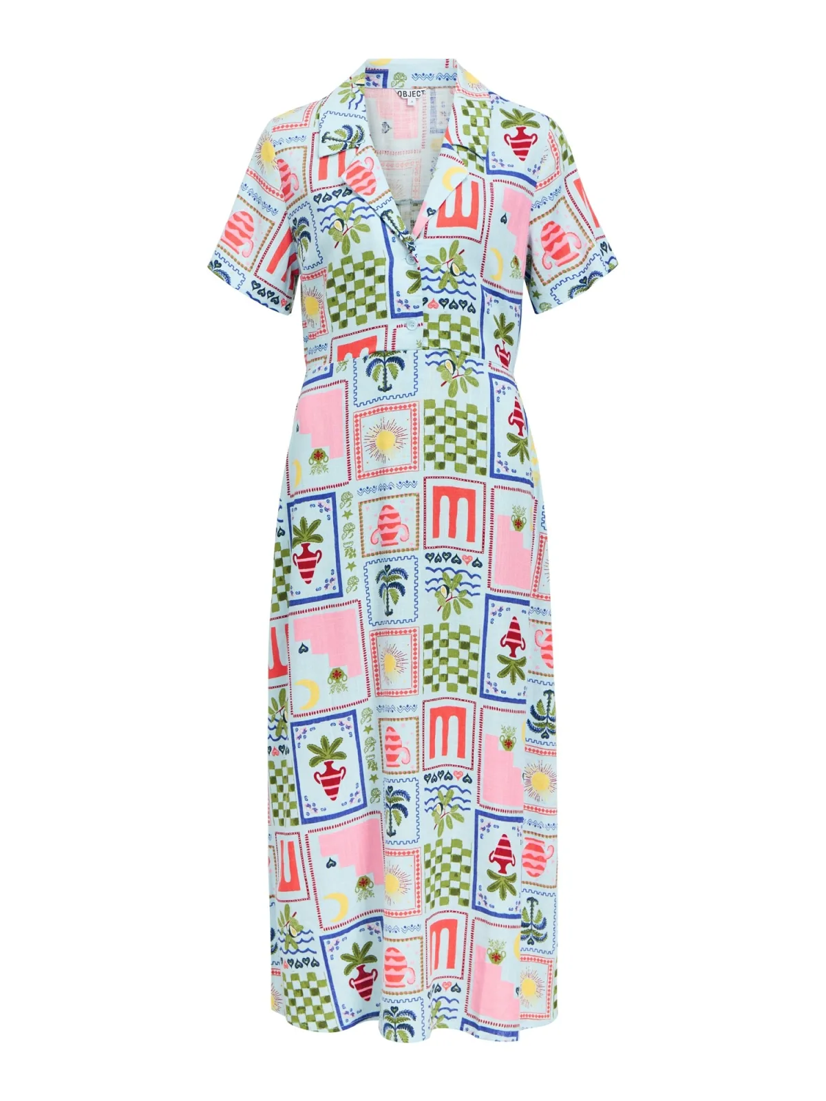 Specificaties: OBJECT Jurk ‘OBJEDIE’ lichtblauw / groen / rosa / rood