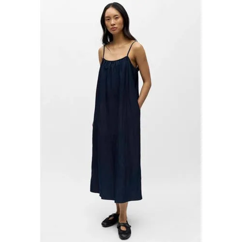 Deze OBJECT maxi jurk Objgundi in marineblauw is een luchtige basic voor elke dag. De lange lengte, dunne spaghettibandjes en rechte, oversized pasvorm geven een ontspannen silhouet dat soepel langs het lichaam valt. De zachte, lichte stof voelt comfortabel aan op de huid en beweegt gemakkelijk met je mee, ideaal voor warmere dagen in het voorjaar en de zomer.Kenmerken van de marineblauwe maxi jurk Lange maxi lengte voor een vloeiend silhouet Spaghettibandjes en ronde hals voor een open, luchtige bovenkant Oversized pasvorm, valt ruim en niet getailleerd Effen marineblauwe kleur, makkelijk te combineren met sandalen of sneakers Zonder sluiting, je trekt de jurk eenvoudig over het hoofd aan Geen zakken voor een rustige, strakke belijning Handwas aanbevolen en niet geschikt voor de droogtrommel Niet strijken, de soepele stof blijft mooi zonder strijkbout Valt volgens maatadvies normaal, kies je gebruikelijke maatRelaxed dragen op doordeweekse dagenDeze Objgundi jurk past goed bij een dagelijkse garderobe. Draag de maxi jurk met platte sandalen en een lichte cardigan voor een werkdag, of met slippers en een denim jasje voor een ontspannen weekend. De ruime pasvorm geeft bewegingsvrijheid, terwijl de lange lengte toch bedekking biedt.OBJECT als stijlpartnerOBJECT ontwerpt kleding met een moderne, toegankelijke uitstraling. De collecties spelen in op trends, maar blijven draagbaar voor elke dag. Met deze maxi jurk kies je voor een item dat eenvoudig te stylen is en in verschillende situaties passend is.Een maxi jurk waarmee je met weinig moeite een complete outfit hebt.