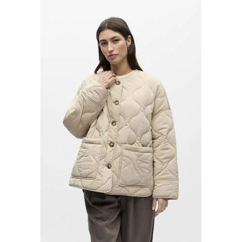 Ga voor een lichte laag die overal bij past met deze OBJECT Objallie quilted jas in ecru. De doorgestikte structuur geeft een rustige, moderne uitstraling en maakt de jas ideaal voor frisse lentedagen. De rechte pasvorm en ronde hals zorgen voor een tijdloos silhouet dat eenvoudig over je favoriete trui of T-shirt valt.Quilted design voor elke dag Quilted damesjas met doorgestikte banen voor een subtiele, gestructureerde look Ecru kleur die zich makkelijk laat combineren met lichte en donkere outfits Lange mouwen en ronde hals voor een rustige, minimalistische stijl Knoopsluiting aan de voorkant, handig om open of dicht te dragen Voorzakken voor kleine essentials zoals je telefoon of sleutels Geschikt als outdoor jas in het voorjaar en op milde, droge dagenLichte tussenlaag voor het voorjaarDeze jas werkt goed als tussenlaag in het voorjaar of op koele zomerdagen. Draag de quilted jas losjes open over een jeans en sneakers of sluit de knopen als het wat frisser wordt. De lengte en het lichte gewicht maken het een praktische jas om snel even aan te trekken als je de deur uit gaat.OBJECT: Scandinavische eenvoudOBJECT staat bekend om kleding met een heldere, Scandinavische uitstraling. De collecties combineren functionele details met een moderne pasvorm. Met deze quilted jas kies je voor een item dat past in een garderobe waarin comfort en stijl op een natuurlijke manier samenkomen.Een rustige, doorgestikte jas die je makkelijk pakt voor al je dagelijkse momenten buiten de deur.