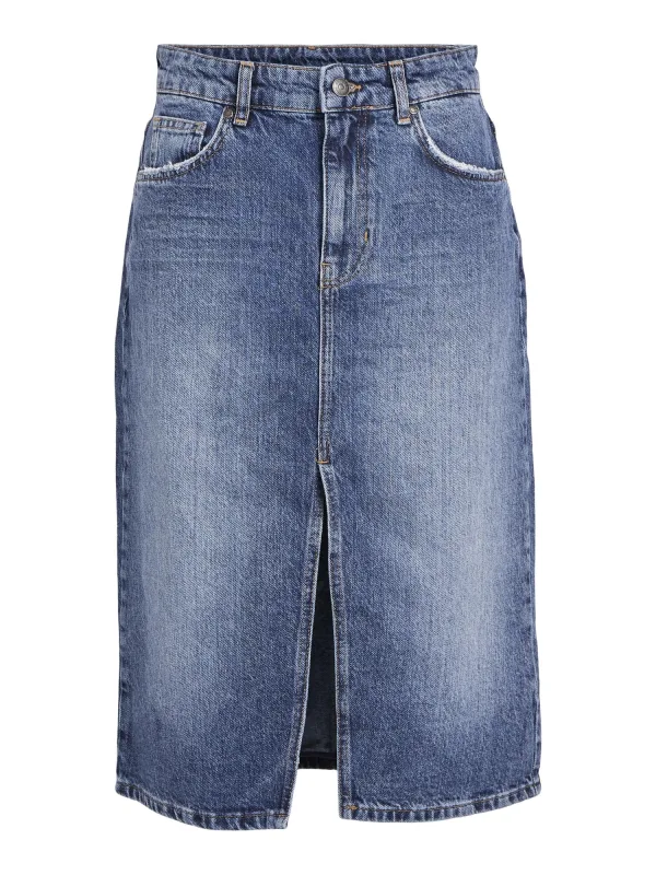 Object Objharlow Midi Denim Skirt Noos Rokken Dames Blauw