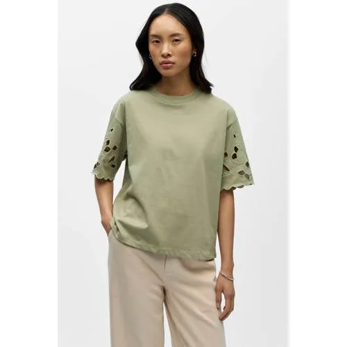 Fris, licht en makkelijk te combineren, dit katoenen dames T-shirt van OBJECT is een fijne basic voor elke dag. De lichtkaki kleur geeft je outfit een zachte, rustige uitstraling en past goed bij zowel jeans als een luchtige rok. Het T-shirt heeft een rechtvallend model en een ronde hals, waardoor het losjes om je lichaam valt zonder strak te zitten.Details die je elke dag wilt dragen Gemaakt van 100% katoen, voelt soepel en zacht aan op de huid Lichtkaki effen kleur, makkelijk te combineren met verschillende stijlen Korte, rechte mouwen voor een luchtig gevoel op warmere dagen Ronde hals voor een tijdloze, vrouwelijke look Rechtvallende pasvorm, biedt comfortabele bewegingsvrijheid Open detail als subtiel accent Onderdeel van de 'Daily' collectie, ideaal voor alledaags gebruik Wasvoorschrift: handwas, niet in de droogtrommel en niet strijkenVoor ontspannen dagelijkse outfitsDit T-shirt is een praktische keuze voor het voorjaar en de zomer. Draag het op een losse broek of een korte jeans voor een casual look, of stop het in een hoge taille rok voor een iets gekledere uitstraling. De neutrale kleur maakt het eenvoudig om laagjes toe te voegen, zoals een vest of licht jasje.OBJECT: moderne basics met een eigentijdse stijlOBJECT staat bekend om eigentijdse mode met aandacht voor pasvorm en draagbaarheid. De collecties sluiten aan op het dagelijks leven en zijn makkelijk te combineren met wat je al in de kast hebt. Met dit T-shirt kies je voor een betrouwbaar kledingstuk dat je vaak zult pakken.Een subtiele basic die je garderobe rustig en compleet maakt.