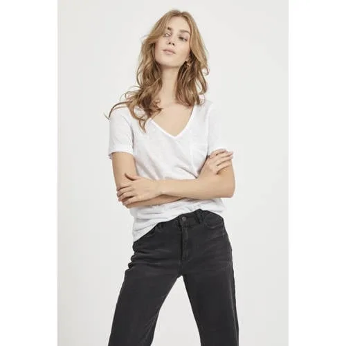 Object T-shirt Objtessi Slub S/s V-neck Noos 23023816 White Dames...