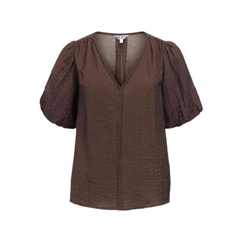 Deze donkerbruine top voor dames van OBJECT is een stijlvolle basic voor elke dag. De effen kleur en de korte ballonmouwen geven een moderne uitstraling, terwijl de V-hals het model vrouwelijk maakt zonder teveel op te vallen. De geweven stof valt soepel langs je lichaam en voelt prettig aan, fijn voor lange werkdagen of een etentje na kantoor.Details die je elke dag draagt Effen donkerbruine top, makkelijk te combineren met jeans, pantalon of rok Korte ballonmouwen zorgen voor een subtiel volume aan de schouders V-hals die mooi openvalt, zonder diep te zijn Gemaakt van 80% viscose voor een soepele, zachte touch Geweven kwaliteit voor een nette, iets geklede look Wasbaar op 30 graden en lauw strijkbaar (1 punt), niet in de droogtrommel Dit artikel valt normaal volgens het maatadviesVeelzijdig op kantoor en in het weekendDeze top past bij drukke werkdagen en ontspannen momenten. Combineer met een donkere jeans en loafers voor een dagelijkse outfit of met een pantalon en hakken voor een meer geklede look. De donkerbruine kleur is geschikt voor het voorjaar, maar ook makkelijk door te dragen in andere seizoenen.OBJECT als moderne kledingpartnerOBJECT staat bekend om moderne, goed draagbare collecties met een frisse, Scandinavische uitstraling. De ontwerpen sluiten aan op het dagelijkse leven, met items die je eenvoudig combineert en vaak uit de kast pakt. Zo voeg je met deze top een betrouwbare favoriet toe aan je garderobe.Een tijdloze basic die je garderobe rustig en verzorgd laat aanvoelen.