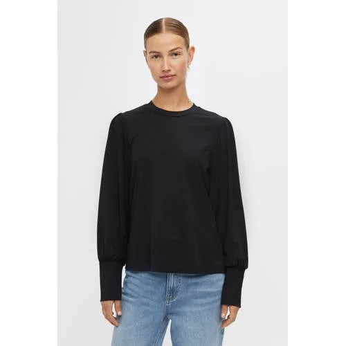 Deze jersey top voor dames van OBJECT is gemaakt van viscose (duurzaam materiaal). Het model heeft een ronde hals en lange mouwen.details van deze longsleeve:• stijlnaam: OBJCAROLINE• elastische boord• pofmouwen