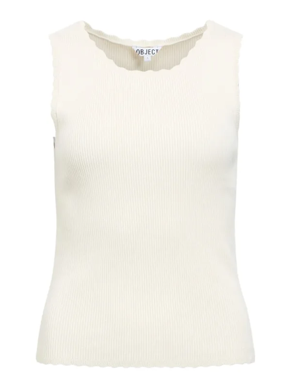 Design: Geribbeld gebreid, Geschulpte zoom; Materiaal: Jersey; Halstype: Ronde hals; Motief: Effen; Soort bandjes: Brede bandjes; Extra's: Met textuur, Voelt zacht aan; Pasvorm: Normale pasvorm; Armlengte: Mouwloos; Lengte: Normale lengte