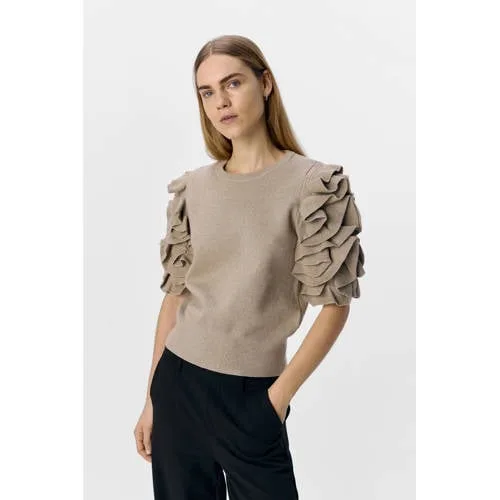 Deze trui van OBJECT heeft een ronde hals en halflange mouwen. Gemaakt van viscose en polyester, fijn gebreid en voorzien van ruches. Een stijlvolle toevoeging aan je garderobe. Geschikt voor verschillende gelegenheden.
