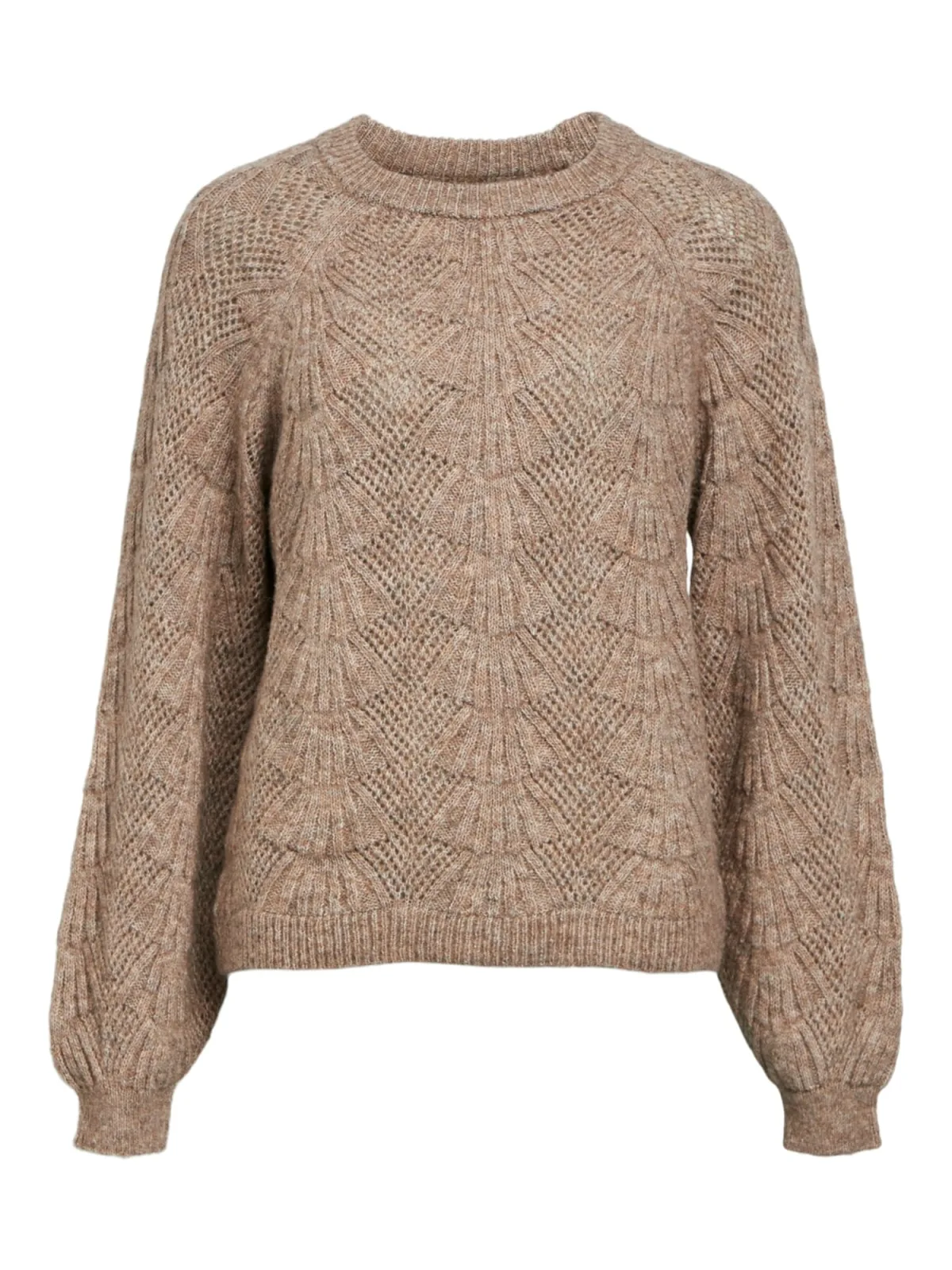 Design: Geribbelde kraag, Rechte zoom, Raglanmouwen; Materiaal: Knitwear; Halstype: Ronde hals; Motief: Mélange; Details: Mesh; Extra’s: Fully fashioned, Met textuur; Pasvorm: Normale pasvorm; Armlengte: Lange mouw; Lengte: Normale lengte