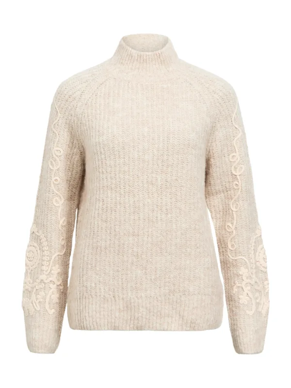 Design: Geribbelde kraag, Rechte zoom, Raglanmouwen, Staande kraag; Type sluiting: Slip; Materiaal: Knitwear; Halstype: Opstaande kraag; Motief: Mélange; Details: Borduursels; Extra's: Met textuur, Voelt zacht aan; Pasvorm: Normale pasvorm; Armlengte: Lange mouw; Lengte: Normale lengte