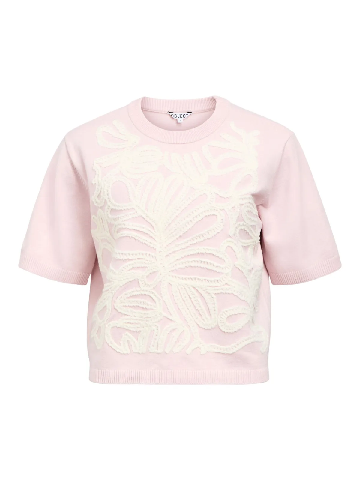 Design: Geribd ceintuurtje; Materiaal: Knitwear; Halstype: Ronde hals; Details: Borduursels; Extra’s: Applicaties; Pasvorm: Losse pasvorm; Armlengte: Kwartmouw; Lengte: Normale lengte