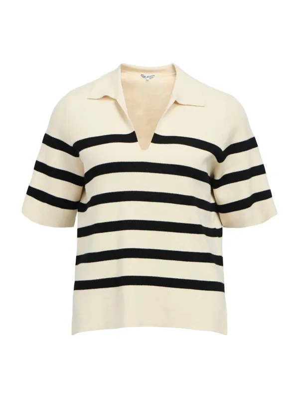 Design: Geribbelde kraag, Geribd ceintuurtje, Zijdelingse inkepingen; Materiaal: Knitwear; Halstype: Polokraag; Motief: Gestreept; Extra's: All-over patroon, Koele grip; Pasvorm: Normale pasvorm; Armlengte: Halve mouw; Lengte: Normale lengte