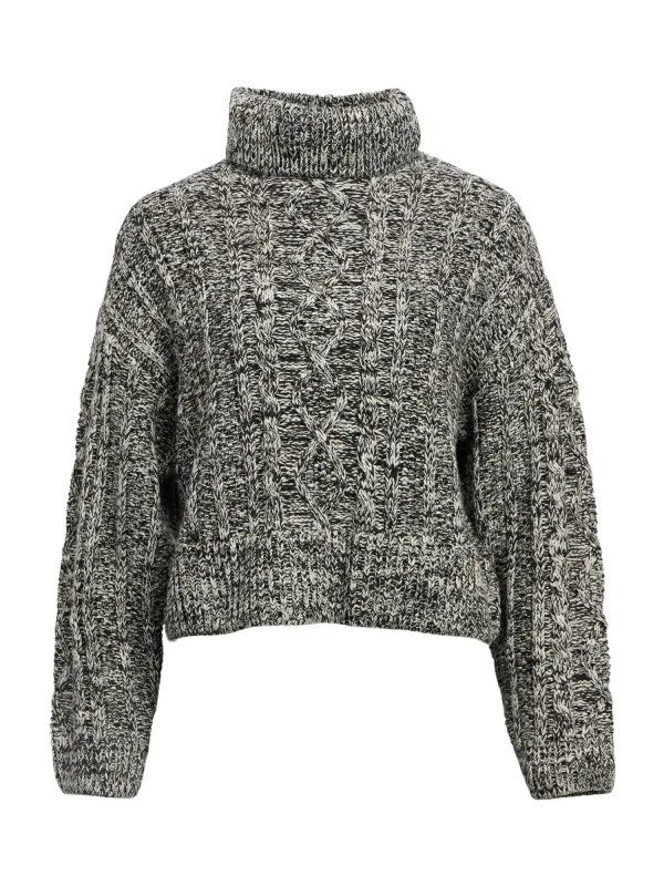 Design: Geribbelde kraag, Rechte zoom, Geribd ceintuurtje; Materiaal: Knitwear; Halstype: Col; Motief: Mélange; Extra's: Patroon gebreid, Fully fashioned; Pasvorm: Losse pasvorm; Armlengte: Lange mouw; Lengte: Normale lengte