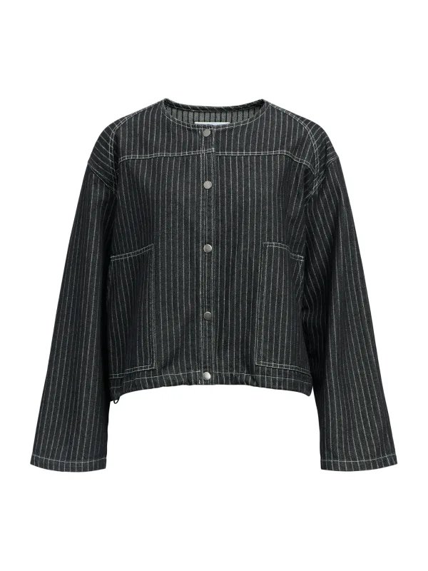 Design: Drukknopen, Overcut schouder, Opgezette zakken; Type sluiting: Drukknoop; Voering: Niet gevoerd; Materiaal: Denim; Motief: Krijtstrepen; Extra's: Trekkoord in de boord, All-over patroon, Vaste grip; Pasvorm: Losse pasvorm