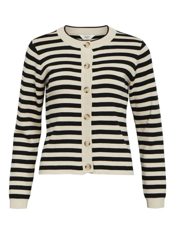 Vest Ester van Object is een dames vest met een casual stijl. Het heeft een opstaande kraag en een ronde halslijn, gecombineerd met een knoopsluiting en lange mouwen. De regular slimfit pasvorm en het streeppatroon maken dit vest veelzijdig en modieus.