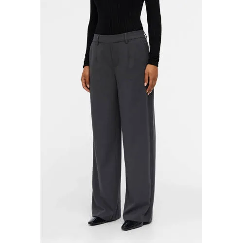 OBJECT wide leg pantalon OBJLISA van polyester grijs