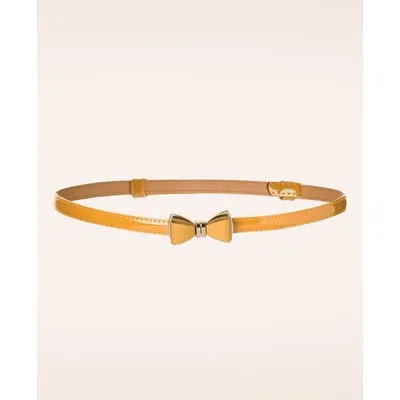 Deze smalle riem is een aanvulling op elke vintage outfit. Uitgevoerd in mosterdgeel imitatie lakleder met een elegant goudkleurig strikje, très chique! Subtiel riempje met een hoge wow-factor en een echte must-have voor alle vintage ladies! * Sluit d.m.v. goudkleurige haaksluiting in de vorm van strikje * Verstelbaar