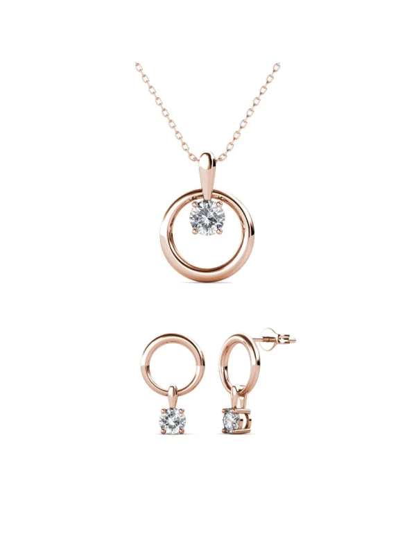 Samenstelling: hoogwaardig messing Afwerking: 18k roséverguld Steensoort: Oostenrijks kristal Aantal stenen (stuks): 3 Steenkleur: kristal Kettinglengte: 400 + 50 Lengte oorbellen (mm): 16,1