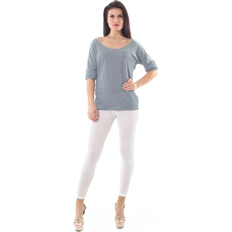 Zeil weg in dit nautisch geïnspireerd T-shirt met een verschil! Heerlijk gewaagd, de open scoop back zorgt voor een flirterig gevoel, terwijl de off shoulder halslijn zorgt voor extra allure. Draag met een witte broek of spijkerbroek om de look compleet te maken. Ronde hals. Elleboogmouwen. Het getoonde model is 176cm en draagt maat S/36.