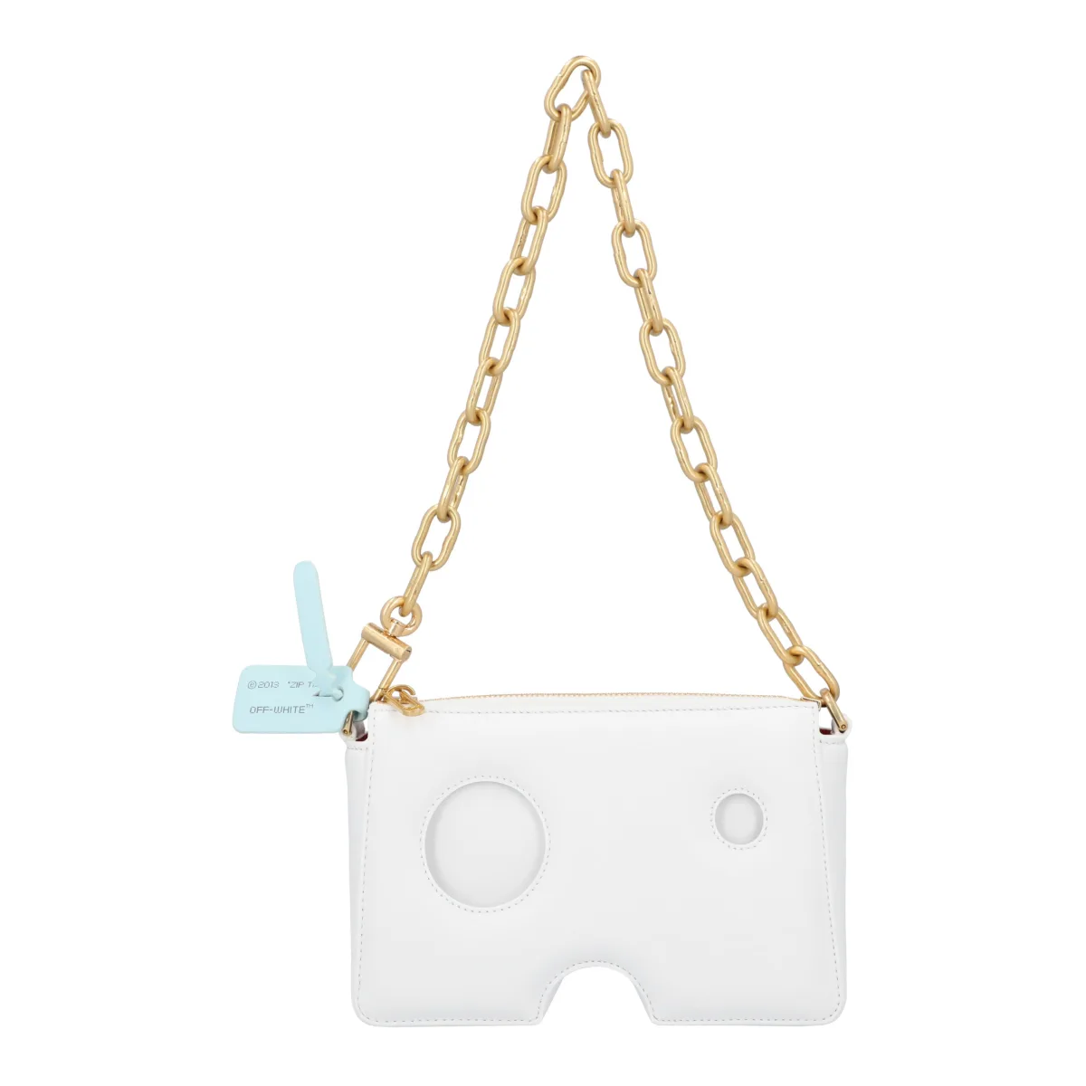 Witte Burrow-20 SchoudertasUitsnijdingenTonal stikselsGouden hardwareKetting-schouderriemKenmerkende Zip Tie labelBovenste ritssluitingHoofdvakInterne kaartsleuven100% LeerDiepte 6 cm, Handvat 25 cm, Hoogte 12 cm, Breedte 20 cm.Maten: breedte: 60 mm lengte: 200 mm hoogte: 120 mm handvatdaling: 250 mm