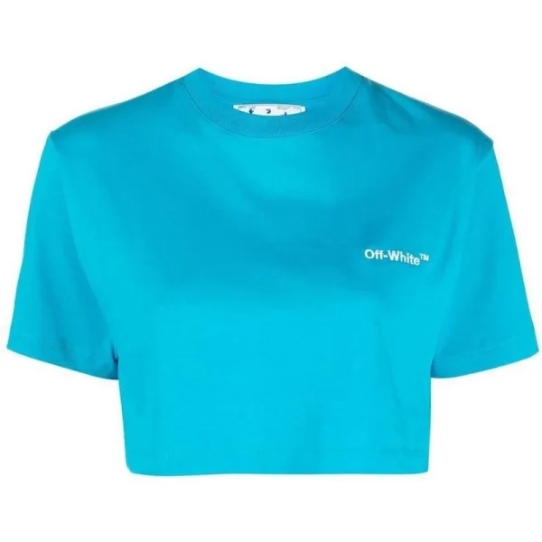 Off White Dames Helvetica Crop T-Shirt (Blauw) Prijzen
