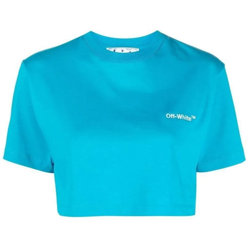 Off White Dames Helvetica Crop T-Shirt (Blauw)