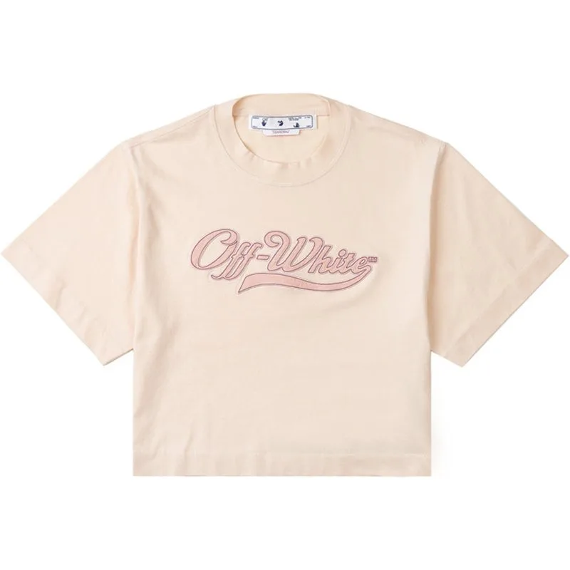 Off-white Geborduurd Honkballogo Cropped Tee Beige