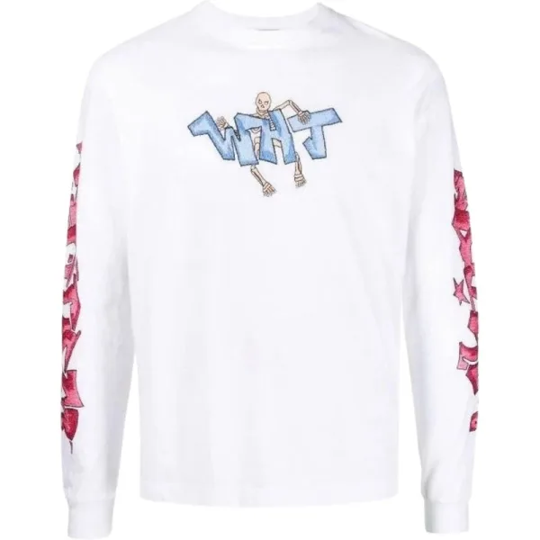 Offwhite Graff White Pupp Skate Tshirt Met Lange Mouwen Wit