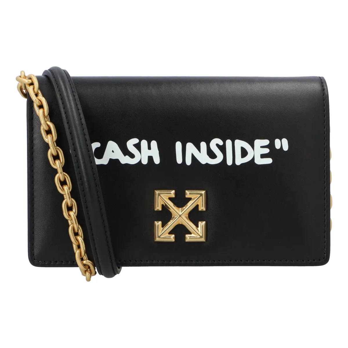 Jitney 0.5 schoudertas van OFF-WHITE met zwart/wit, kalfsleer, kenmerkend Arrows-motief, kenmerkend citatenmotief, vouwbare bovenkant met magnetische sluiting, verdeeld vak, interne ritsvak, insteekvak aan de achterkant en leren en kettinglink schouderriem. DIEPTE: 4,0 centimeter HOOGTE: 11,0 centimeter RIEM: 45,0 centimeter BREDTE: 19,0 centimeter Afmetingen: breedte: 40 mm lengte: 190 mm hoogte: 110 mm riemlengte: 450 mm