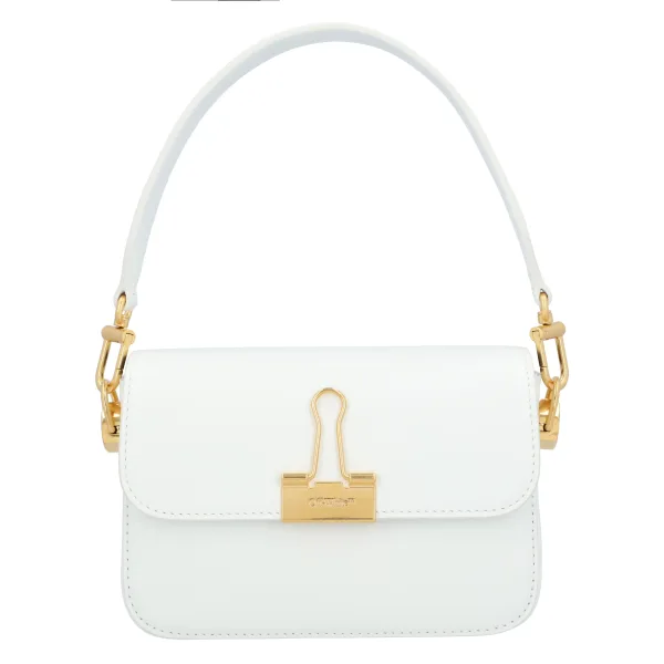 De hedendaagse en zelfrefererende benadering van accessoires door Off-White wordt vastgelegd in deze witte variant van de Binder tas, gemaakt van soepel kalfsleer in Italië en verrijkt met een goudkleurig, kenmerkend Binder Clip-motief op de klep. De verstelbare schouderband maakt het mogelijk om de tas op verschillende manieren te dragen. Voering: Katoen 95%, Acryl 5% Buitenkant: Leer 100% Afmetingen: D 5 cm x H 11 cm x B 17 cm Handgreep Val: 15 cm Schouderband Val: 70 cm Gemaakt in Italië Afmetingen: breedte: 50 mm lengte: 170 mm hoogte: 110 mm lengtestraap: 700 mm handgreep val: 150 mm