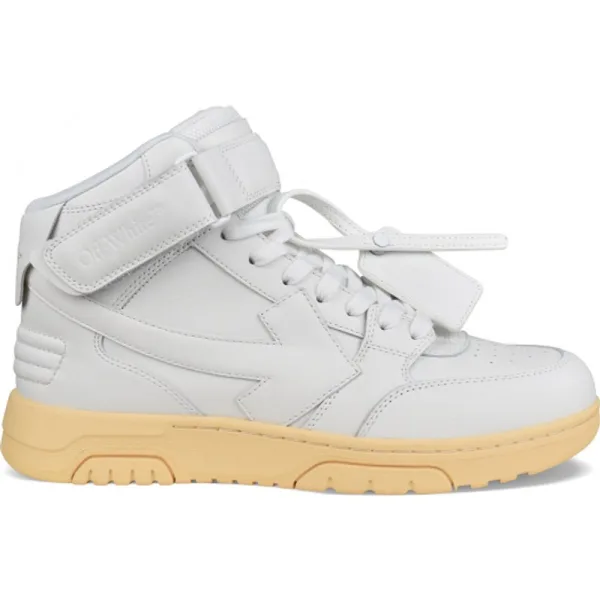 Out Of Office Off-White hoge sneakers van wit leer.Emblematische pijl op de zijkant.Logo met reliëflogo.Witte vetersluiting.Kras op de enkel.Contrasterende platte rubberen zool.Emblematisch label op één schoen.
