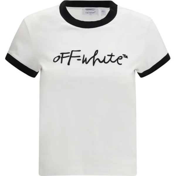 Het Script T-shirt van Off-White vernieuwt een garderobe-essential met een schone, kenmerkende esthetiek. Gemaakt van zachte katoen, heeft het een geborduurd Script-logo op de voorkant, een contrasterende ronde halslijn en korte mouwen, wat zorgt voor een subtiele maar onderscheidende uitstraling die ideaal is voor moderne casual styling. Seizoen: SS26 Pasvorm: Regular Samenstelling: 100% Katoen