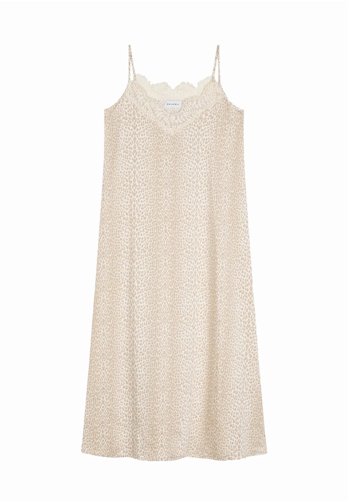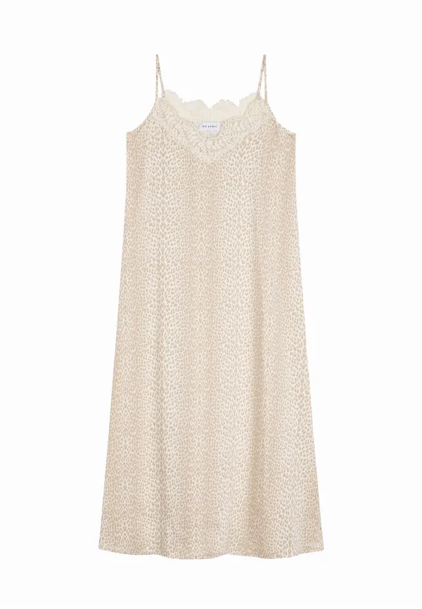 Design: Gevoerde zoom/rand; Materiaal: Jersey; Halstype: V-hals; Motief: Dierenprint; Soort bandjes: Spaghettibandjes; Details: Kant; Extra's: All-over patroon; Lengte: 7/8 lengte; Snit: Uitlopend; Pasvorm: Losse pasvorm; Armlengte: Mouwloos