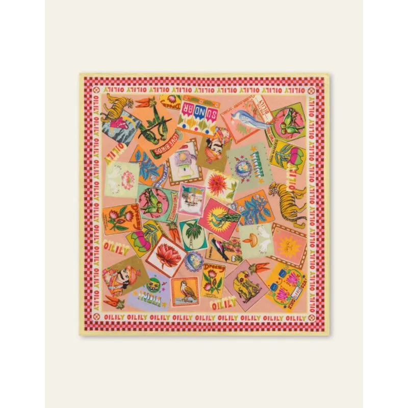 Matchboxes uit India waren de inspiratie voor deze print. In India versieren mensen graag alles, zelfs de doosjes! Onze versie laat tijgers, lotusbloemen, kleurrijke vogels, een maharadja en — waarom niet — een olifant met zonnebril zien. -100% Katoen -55 cm x 55 cm -Gemaakt in India