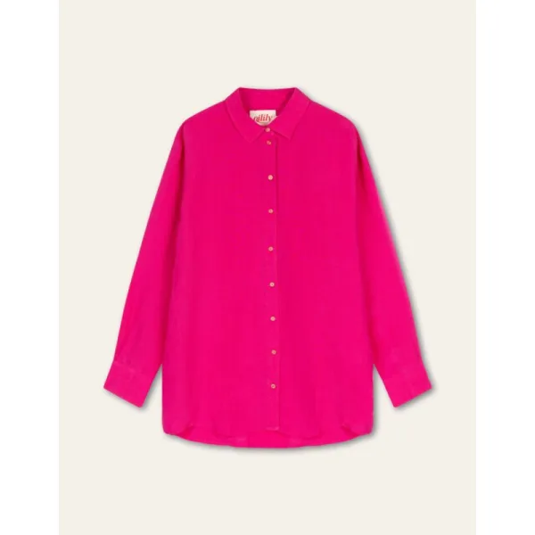 Linnen met viscose blouse in de kleur Raspberry Sorbet met emaille knoopjes waarvan twee net even anders zijn. De loose fit van dit lange model maakt het ideaal om te dragen als je voor een relaxte stijl gaat. - 55% Linnen, 45% Viscose - Emaille knoopjes - Gemaakt in India - Het model is 178cm en draagt maat 36