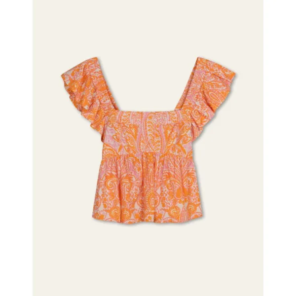 Deze top met dessin Marker Paisley is vanachter gesmockt en gemaakt van heel zacht katoen. De brede banden op de schouders zijn dubbel gevoerd en het lijfje heeft een cupvorm met wat versteviging. De subtiele peplum valt op de broekrand. - 100% Katoen - Gemaakt in India - Het model is 178cm en draagt maat 36