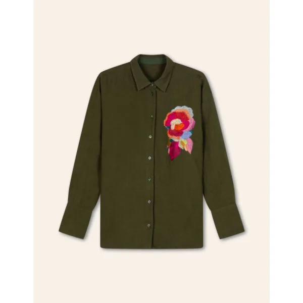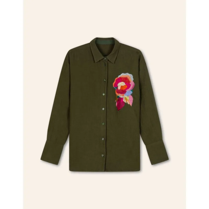 Deze wafel katoenen blouse in de kleur Rifle Green is een instant favoriet. Heerlijk zacht en warm in een rijke, diepgroene kleur. De prachtige hand geborduurde floral applicatie maakt het helemaal af. -100% Katoen -Gemaakt in India