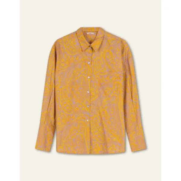 Prachtig paisley prijkt op deze blouse met kleine bloemetjes die verborgen smileys zijn. Met elegante, lange manchetten met kleine splitjes om je mouwen makkelijk om te slaan. - Regular fit - Gemaakt in India - 100% Katoen - Het model is 178cm en draagt maat 36