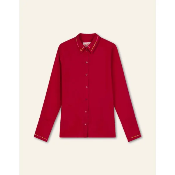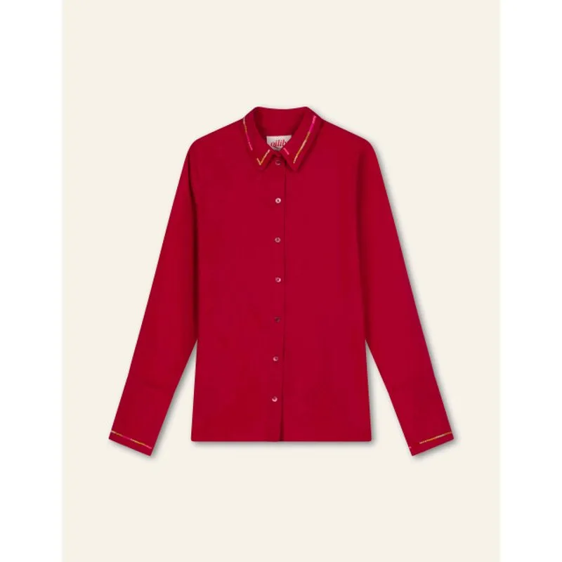 Persian Red is de naam van de heerlijke kleur van deze getailleerde blouse. Je vindt prachtige geborduurde details op de puntkraag en lange manchetten met kleine splitten. -100% Katoen -Gemaakt in India