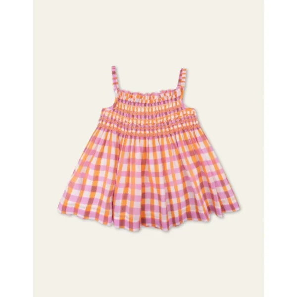 Gek van gingham, het is echt ons lievelingsruitje deze zomer. En al helemaal op dit heerlijke topje met gesmockte spaghettibandjes en een bovenkant met smockwerk, handgeborduurde details en zoete ruffels. Strijk deze top niet om de kwaliteit van de stof te behouden. - 100% Katoen - Fitted - Borduurwerk is handcrafted in India