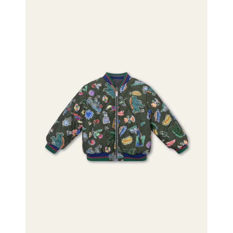 De handgetekende print Salt Marsh Souls laat een leven zien van de zeelui en dieren uit Schokland en Schotland aan één kant van deze reversible bomber. Houd je de zeelui liever geheim? Draai deze bomber dan om en draag de andere kant in teddystof met reflecterende mouwen. Handig: ook de rits-puller is reflecterend. -Buitenkant en vulling: 100% Recycled Polyester -Gemaakt in China