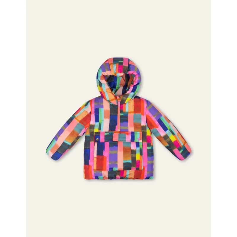 Dessin Taki bestaat uit strepen gemaakt met verf, stiften en glitter pen die in elkaar overlopen tot een kleurrijk geheel. Dat maakt deze winterse anorak een feestje om te dragen. Met ritssluiting en een extra grote zak aan de voorkant. - Loose fit - Gemaakt in China - 100% Recycled Polyester