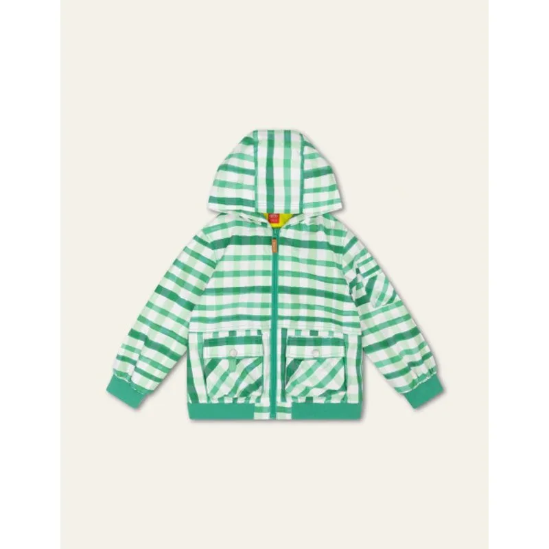 Lekker jack met capuchon voor in de lente. De ruitjes gaan vrolijke allerlei kanten op dus dit is geen gewone Gingham. Aan de voorkant klepzakken met druksluiting want je weet maar nooit wat voor schatten je op straat vindt. - 100% Recycled Polyester - Loose fit - Gemaakt in China