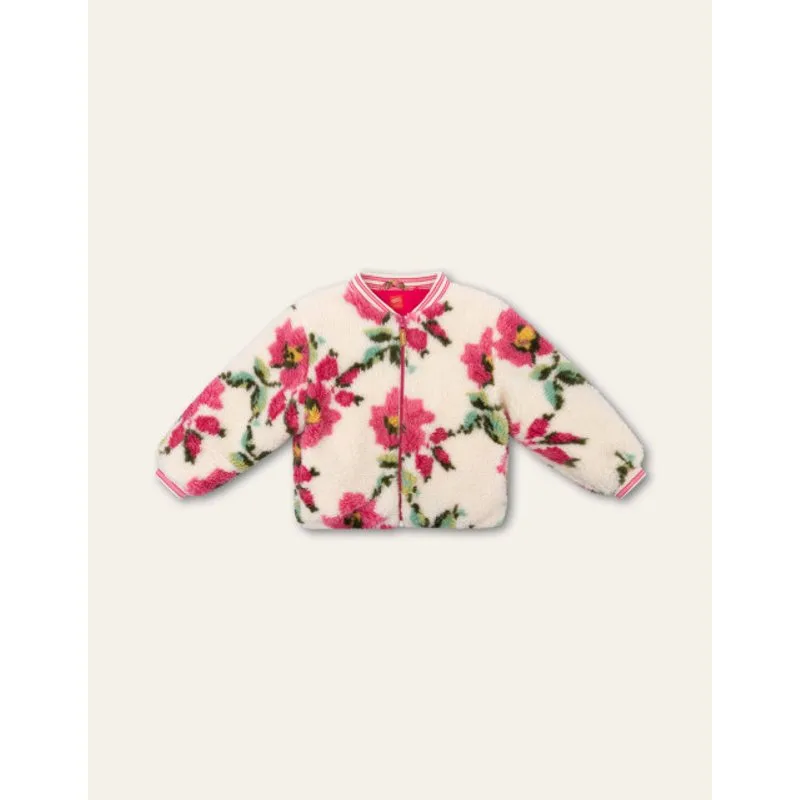 De grote romantische bloemen van print Vroukje staan beeldig op deze teddy bomber. Met stoere kraag, fijne zakken en knoopsluiting. -85% Polyester, 15% Acryl (buitenkant) -100% Recycled Polyester (vulling) -Gemaakt in China