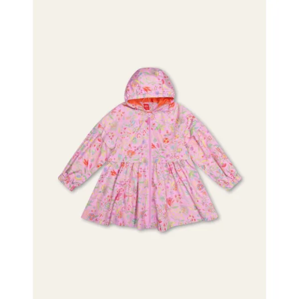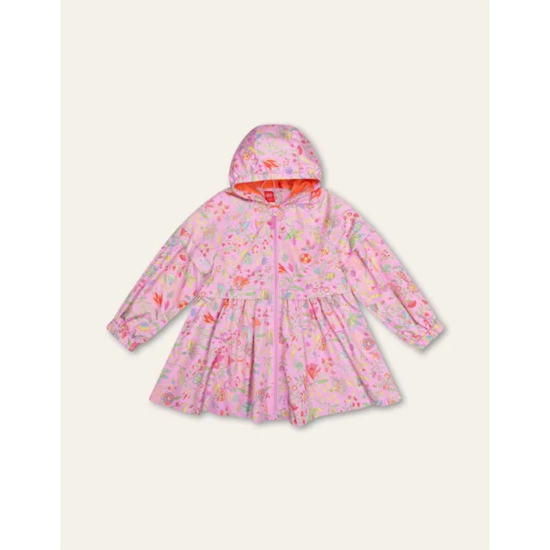 Dessin Sits bestaat uit kleine Sits bloemen in lieve kleuren. Beeldig op deze klokkende jas die iets langer valt, zo halverwege de knie. Met gevoerde capuchon. - 100% Recycled Polyester - Voering lijf en capuchon: 100% Katoen - Voering rest: 100% Polyester - Gemaakt in China