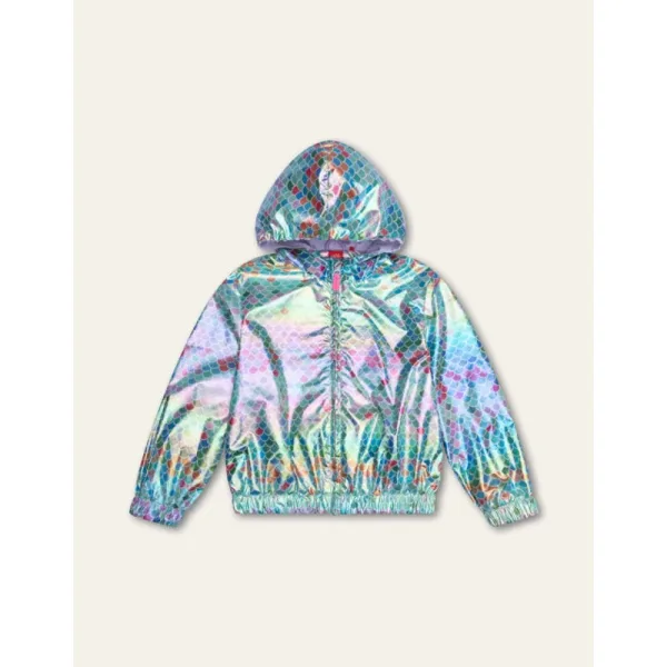 Geïnspireerd door zeemeerminnen maakten we dessin Scales en gaven het een zilveren glans. Een jas om in te stralen! De voering van de jas en capuchon zijn lila en de rits heeft roze details. - 100% Polyester - Voering 100% Polyester - Gemaakt in China