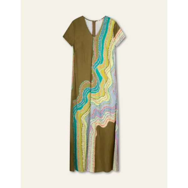 Jurk met een prachtige, vloeiende pasvorm. In de zij zitten subtiele zakken en de rits is verborgen aan de achterkant voor een strakke uitstraling. - 100% Viscose - Maxi - V-hals - Rits aan achterkant - Het model is 175cm en draagt maat 36 - Gemaakt in Turkije