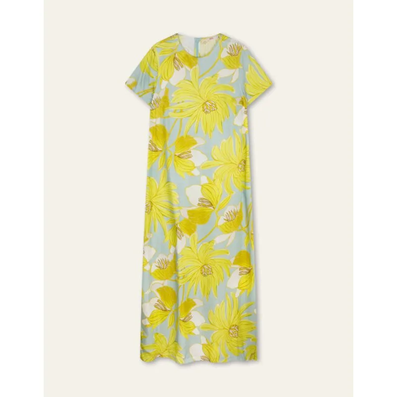 Het zomerse dessin Carnival Cove leent zich goed voor deze satijn met viscose jurk. In de zij subtiele zakken en de rits hebben we ook verborgen aan de achterkant. - 100% Viscose - Gemaakt in Polen - Het model is 178cm en draagt maat 36